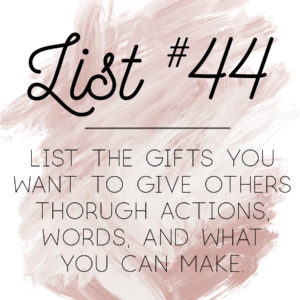 [1] Spending more time with my dad [2] Mentoring [3] Volunteering [4] Sending handwritten notes to family [5] Handmake all my Christmas gifts |