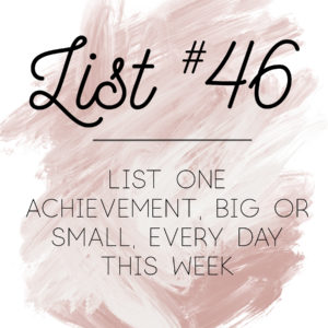 TAKE ACTION: Every achievement is valuable! Take pride in your choices, efforts, and achievements, whatever they are as simple as getting out of bed or as complex as solving world hunger. Use the blank list pages in the back of this journal to start a second list of how these achievements make you feel about yourself and your life.