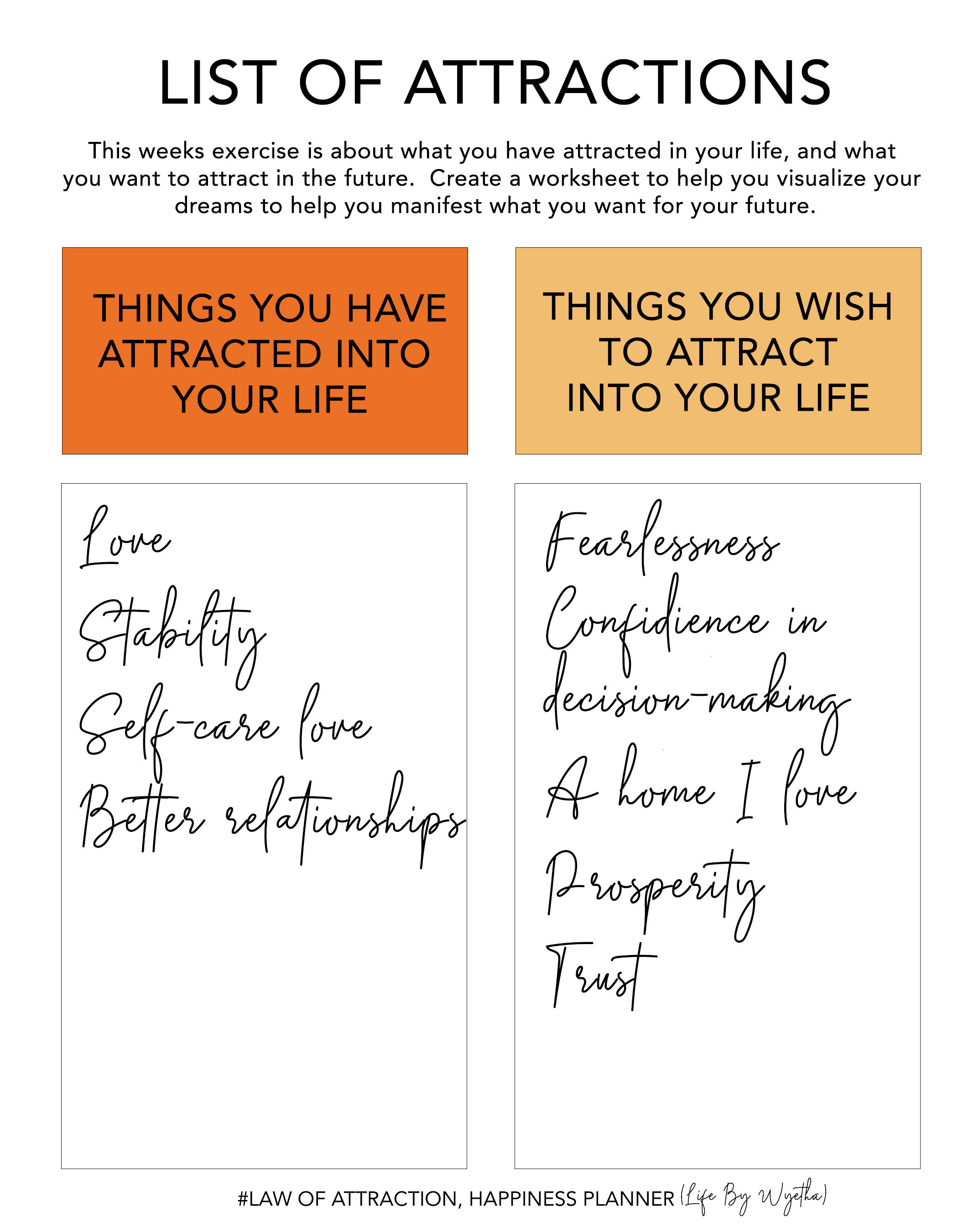 Check out my last two post from the Happiness Planners, Law of Attraction Series.