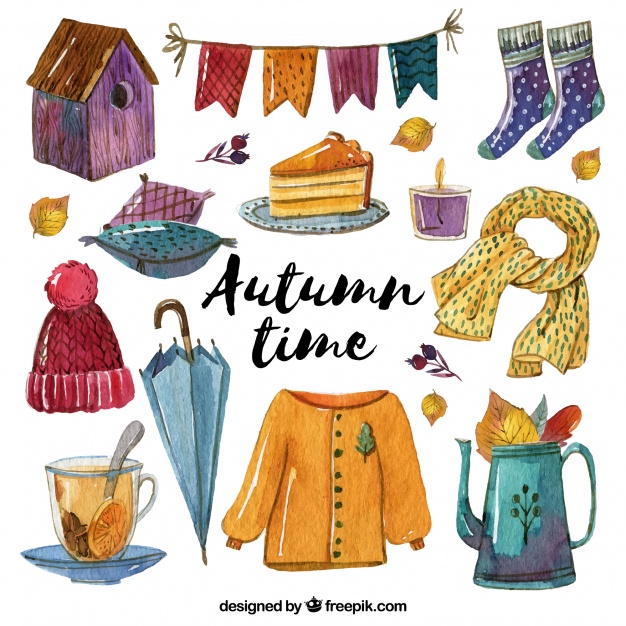 Clothes with Autumnal Watercolor Accessories + by Freepik