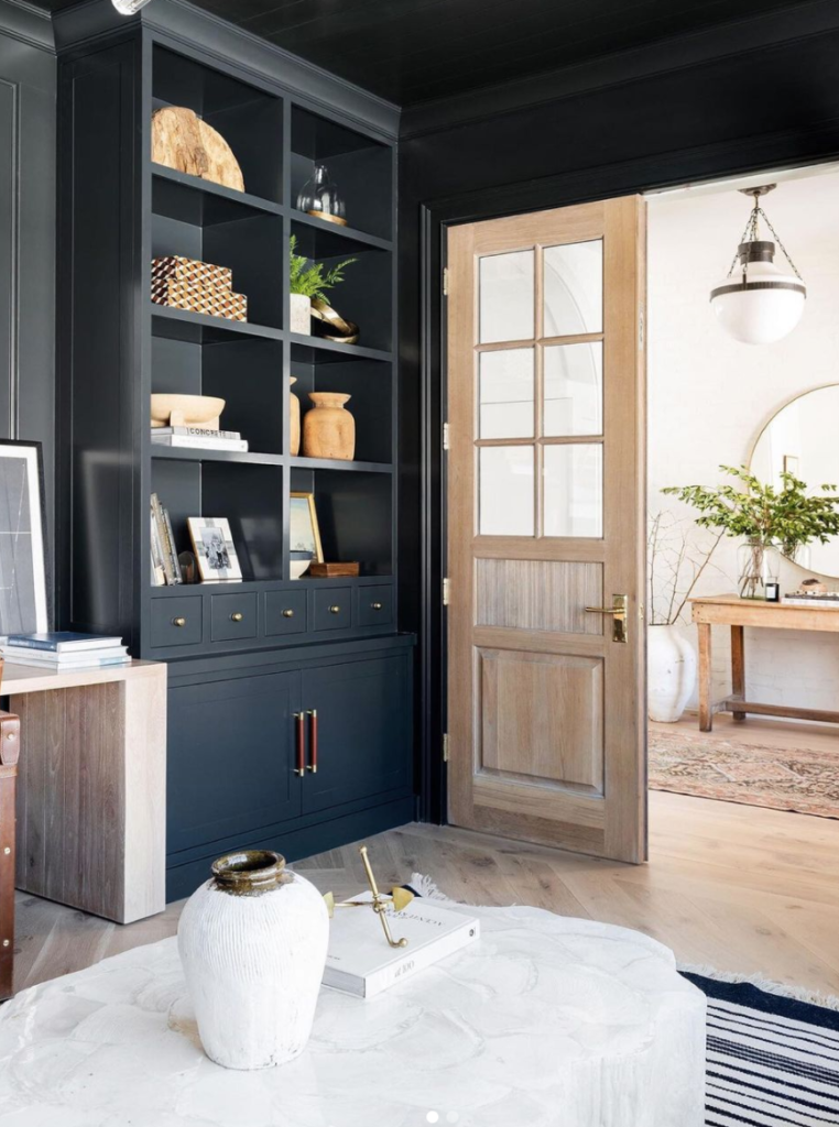 I’m in love with the style of a really dark moody wall with a built-in or dark shiplap. In the fall and winter, you can layer your shelves with pieces that reflect your style. There’s something so cozy about a shelf with personal touches that looks lived-in with history.