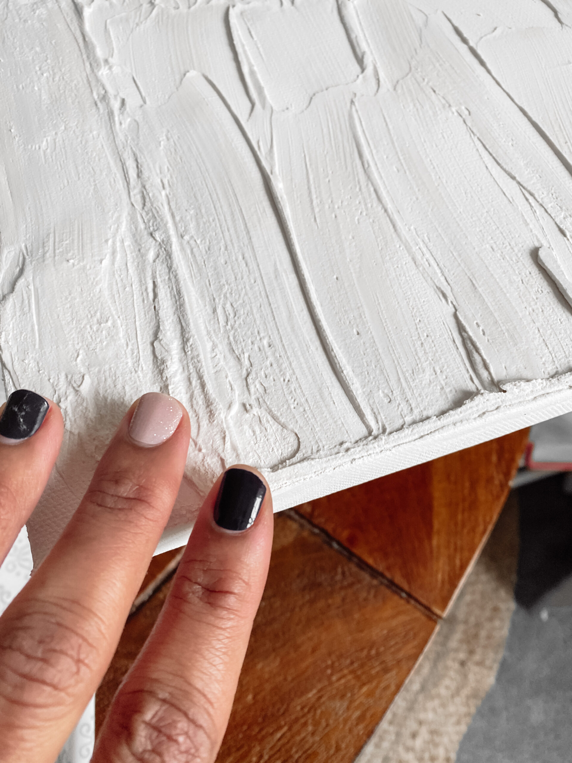 For this project, I messed up and got the powder vs the actual plaster, but that ended up working out in my favor. This way I controlled how thick (or thin) the consistency was and it went on pretty smoothly.