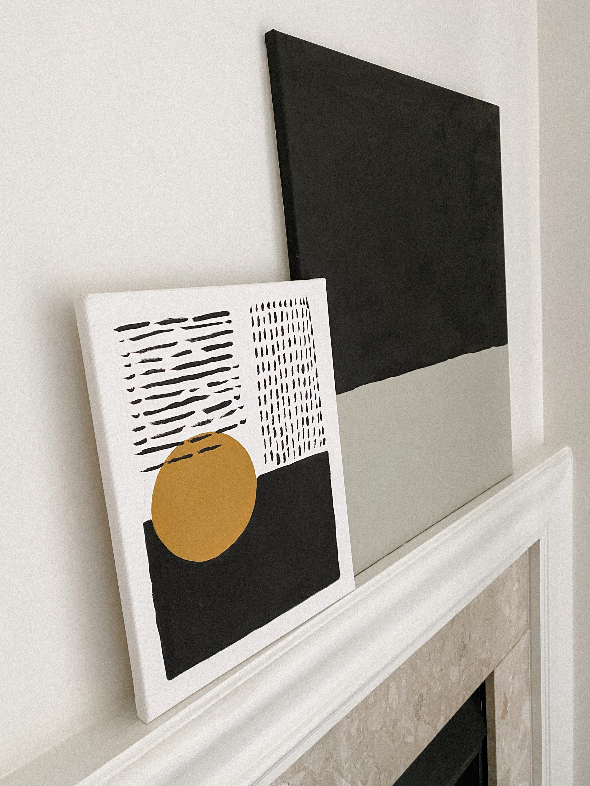 This art is inspired by Drew Scott of Lone Fox on YouTube (I love his DIYs). The only thing I purchased for this project was a few brushes and acrylic paint. I used painter’s tape to create a border and went to work.