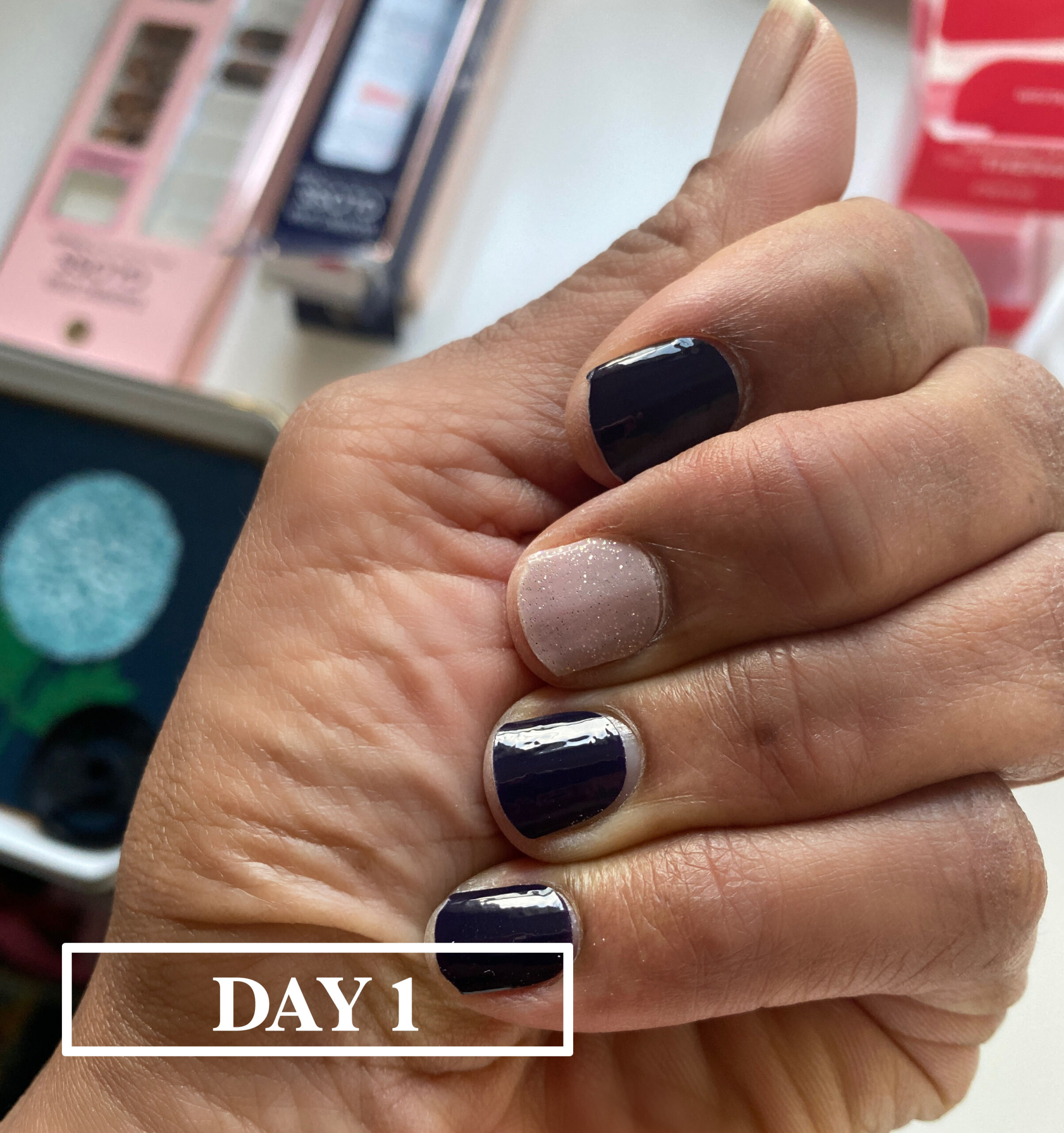 It’s been about a week and a half, since installation and let me say, that these nails are maintenance-free. There have been no issues with peeling, as my nails are normally weak, my nail remains intact. My nails have grown underneath (the 2nd image shows the manicured portion has moved down. They are only a little ruff at the tips, (which I expected) but I really put them to the test. They are great in water, I’ve been cleaning using mild-ish cleaning products and they still look good.