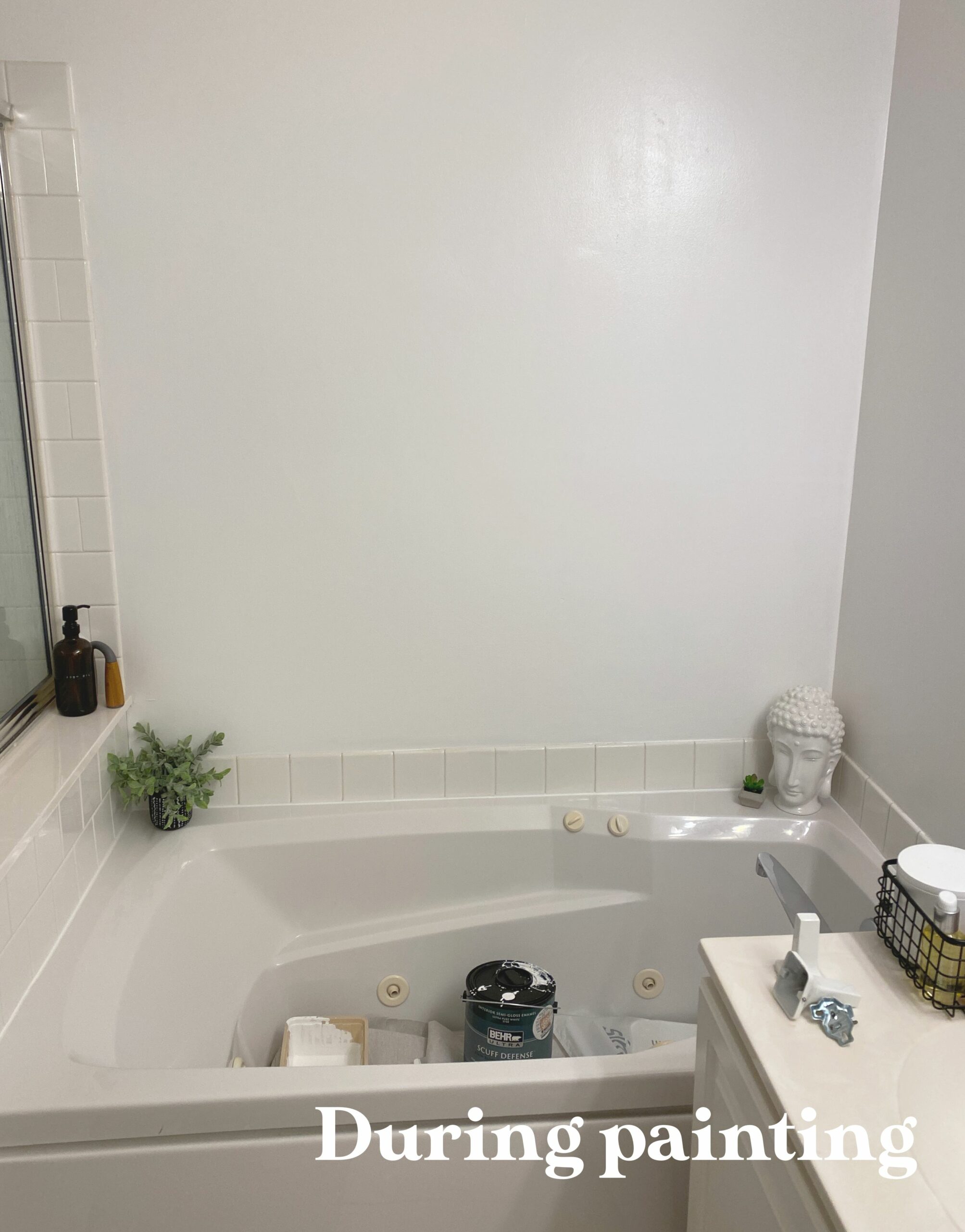 Currently all I’ve done is paint, and I haven’t finished painting because I wanted my new towel bars and hardware in place. This also allows for trial and error in seeing what works and what will not work. I’ve pained a third of the bathroom, but I still need to touch up and paint my baseboards. Once that’s done I can add my towel bars and decorate (that’s the fun part…LOL).