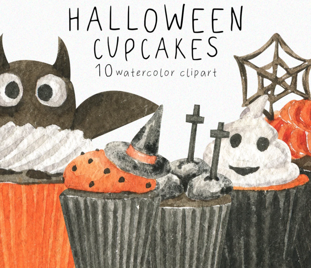 Hand-painted Halloween cupcakes illustrations are from Lichu Art Shop. These sweet, delightful illustration can be used for all your project this season.