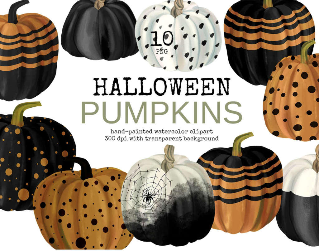 MariaArtCreative is a star sellar and this Happy Halloween Watercolor clip art has a total of 32 png images for your social media, cards, games or scrapbook activity. This package is also on sale for half off on Etsy.