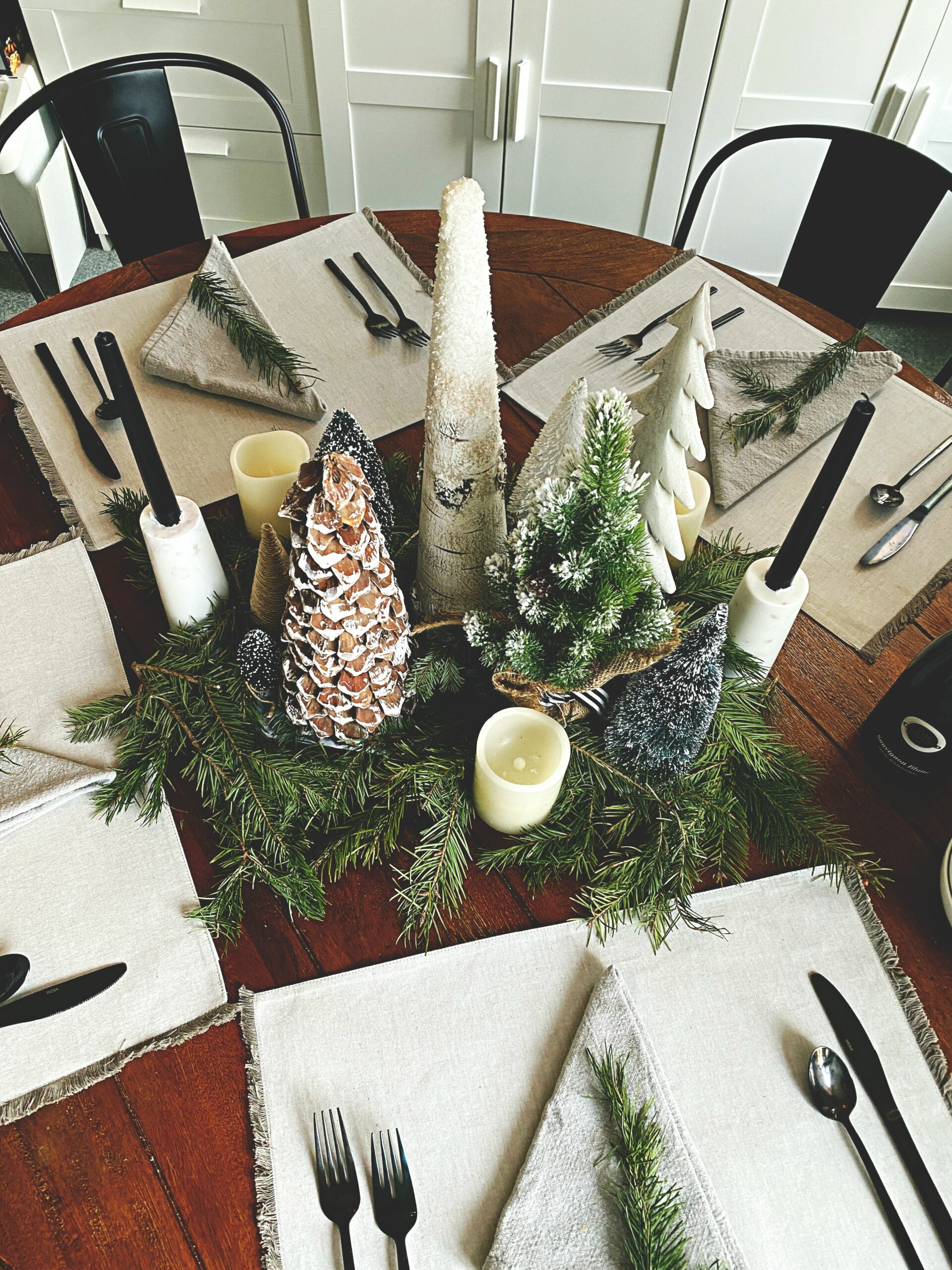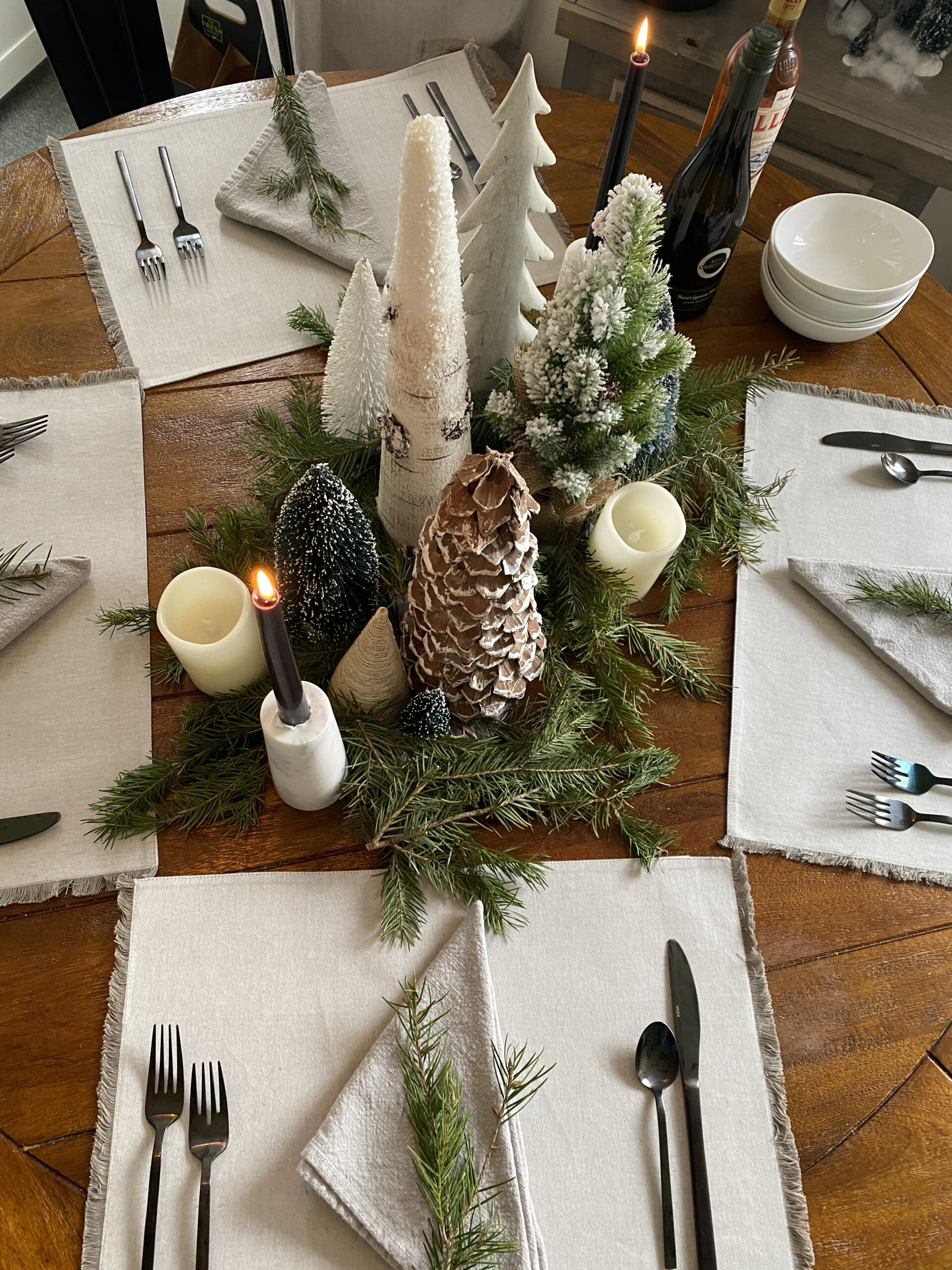 Our Christmas Eve is pretty low key because we’ve already prepped and done what we can do. I’m thawing out my bird today, I worked on my table yesterday, and everything else is in progress.