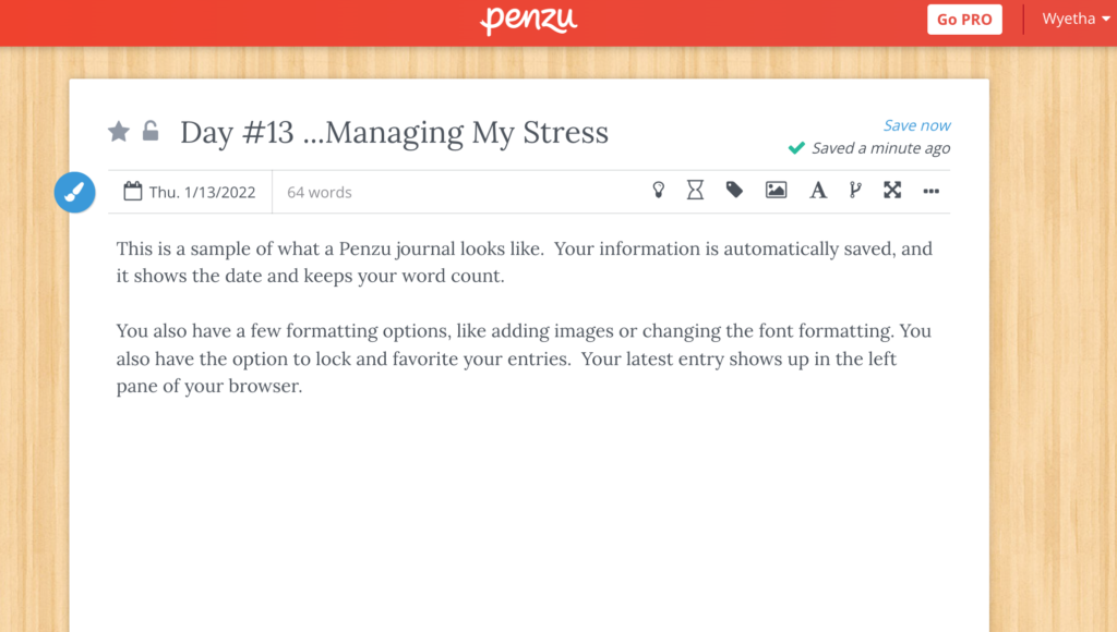 Enter Penzu. Granted Penzu doesn’t have the tracker like 750 words but it was free, and free is the magic word.  Each journal entry was separate, there is a pro account that offers more features but during this time I just wanted to type and I had gotten in such a good habit of writing everyday.  I would start work, answer a few emails, get my coffee and start journaling.