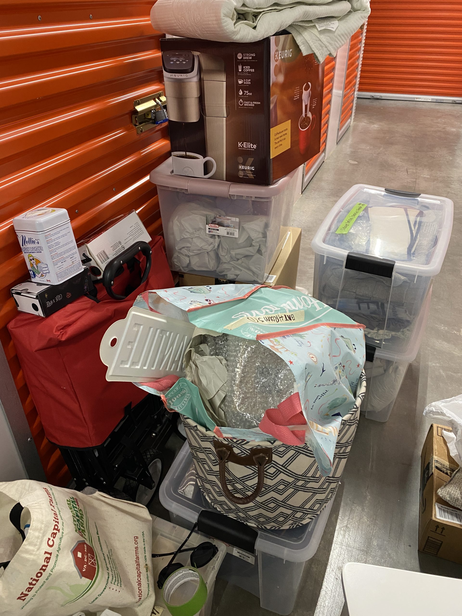 So I shopped my storage and took home just one small bag of goodies and donated the rest. This was also the time I choose to re-organize my main until that had an overflow of household items. I labeled everything, purged some things I wasn’t using, put like items together, and donated the rest. It felt damn good to check that off my list of things to do, and I’ll revisit my unit again at the beginning of October.