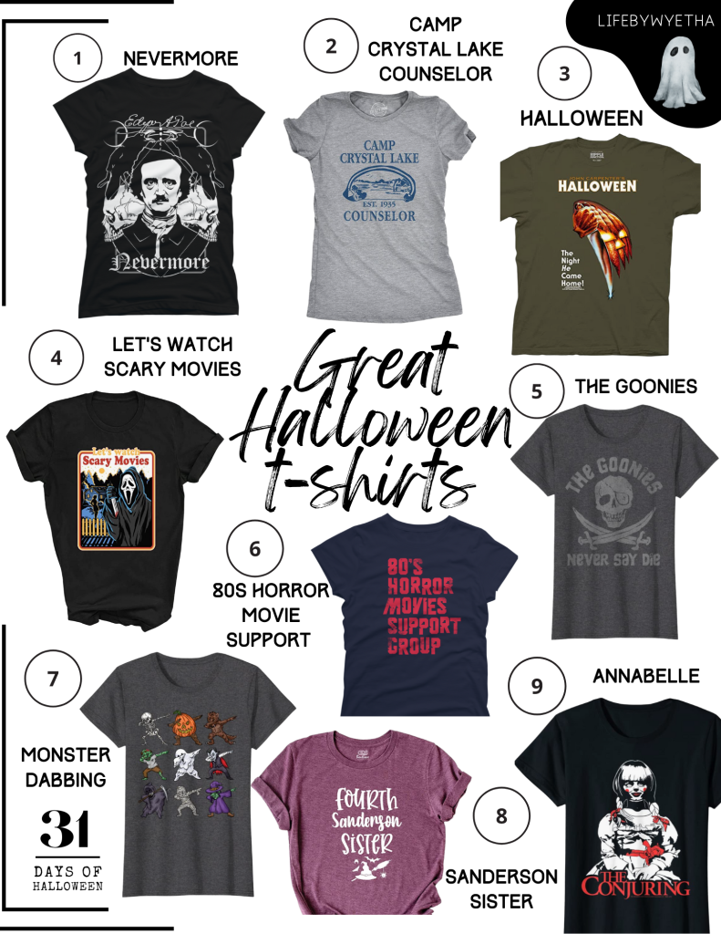 Today I’m sharing some fun and scary Halloween (themed) t-shirts that are great for the season!
