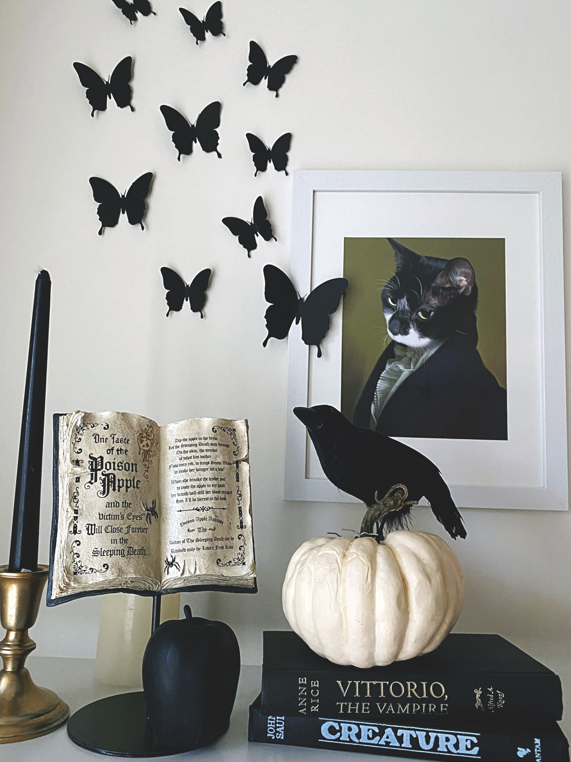 I’ve been going back and forth with some of my Halloween decor. The only new additions are some artwork I’ve printed from the free domain.