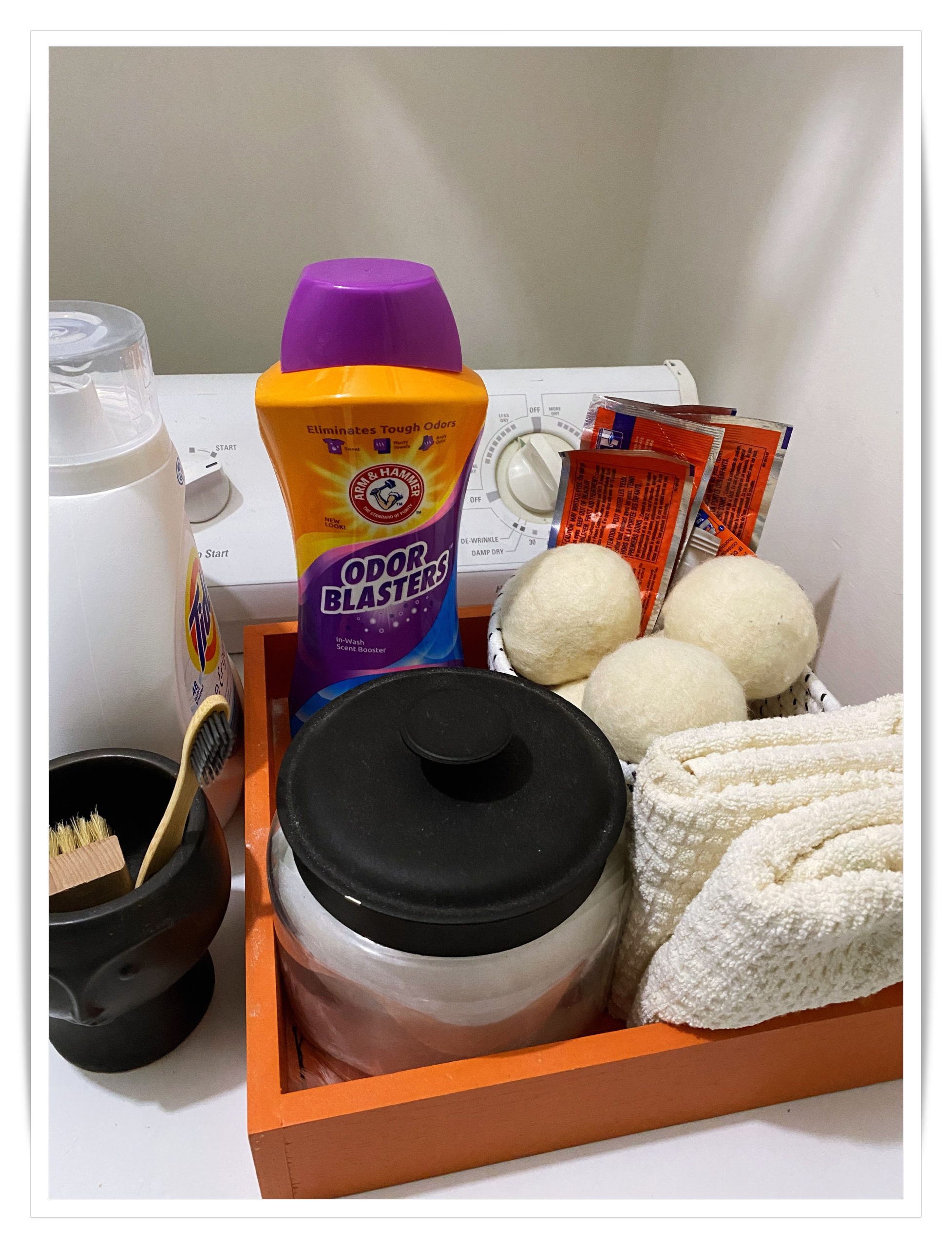 No one really thinks about laundry, you use your detergent, and its accouterments and keep moving. But when I go to do my laundry, I want everything ready to roll, so I took some time to liberate the Borax, Dryer sheets, and other items from their boxes for easy use. It’s also less bulky because these boxes take up space. I move everything where it needs to be, so when it’s time to do that chore, it’s done with ease.