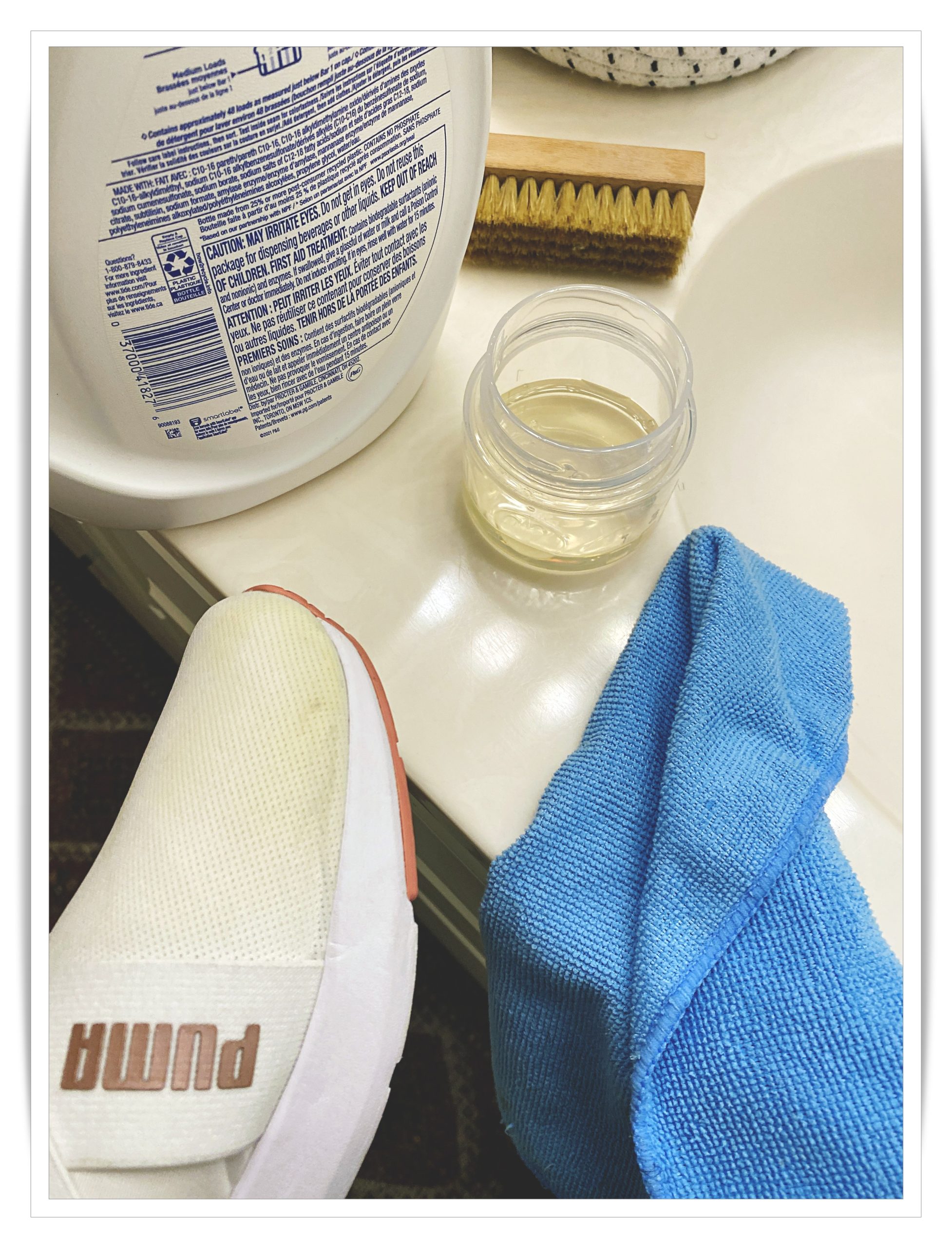 After getting a better look at my shoes, I noticed stains on my white Puma’s, so I added that to the list. Cleaning sneakers is one of the last things that people think about, but I’m old school. I like that fresh-out-da-box white, and because sneakers aren’t cheap, I take care of what I have.