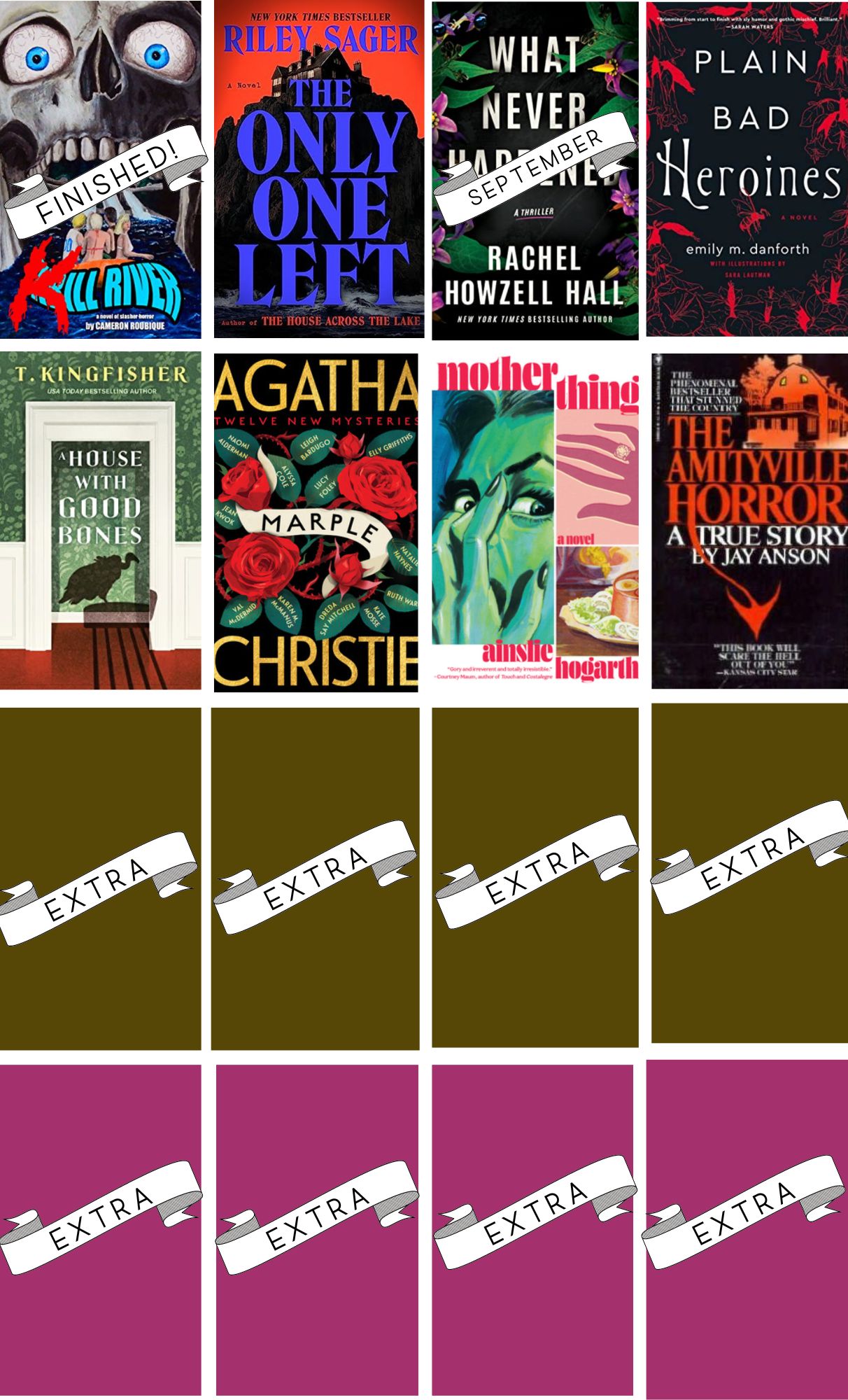 Currently, I haven’t started any new books. I’m giving myself a short break, and then I’ll start Plain, Bad Heroins, which has been on my TBR list for at least 2 years.