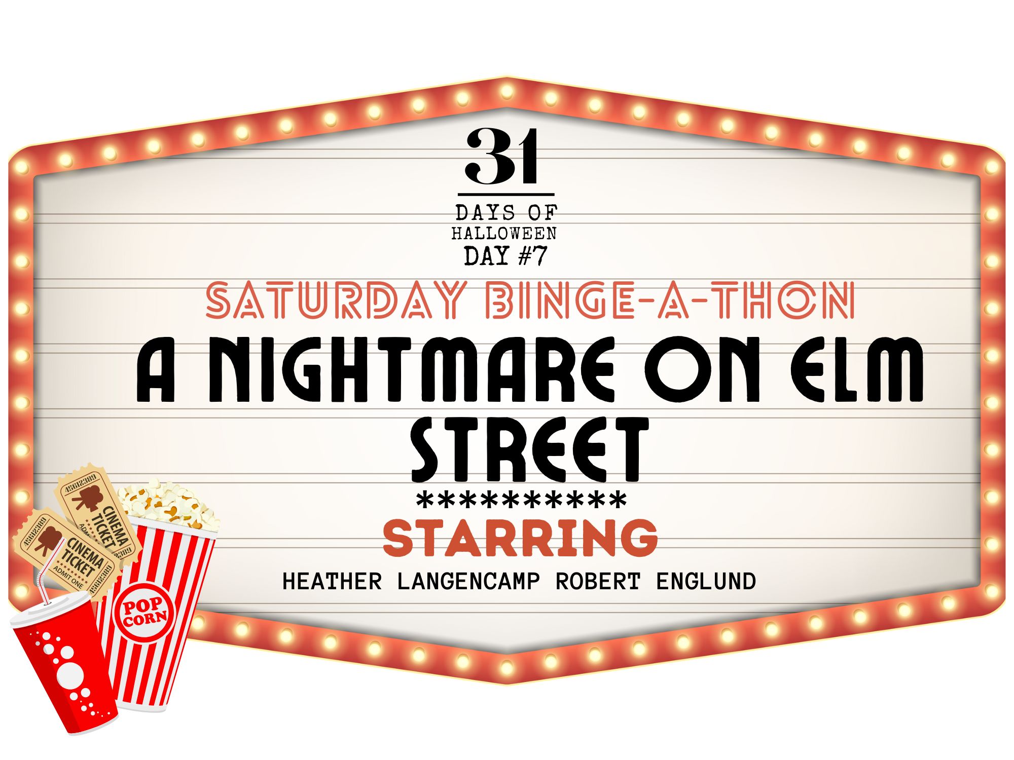 Today is your Saturday Binge-A-thon of A Nightmare on Elm Street. For an archive of the movie Madness, click here. For other Halloween goodies, check out the freebies page and try your luck at the book quiz at the bottom of the page