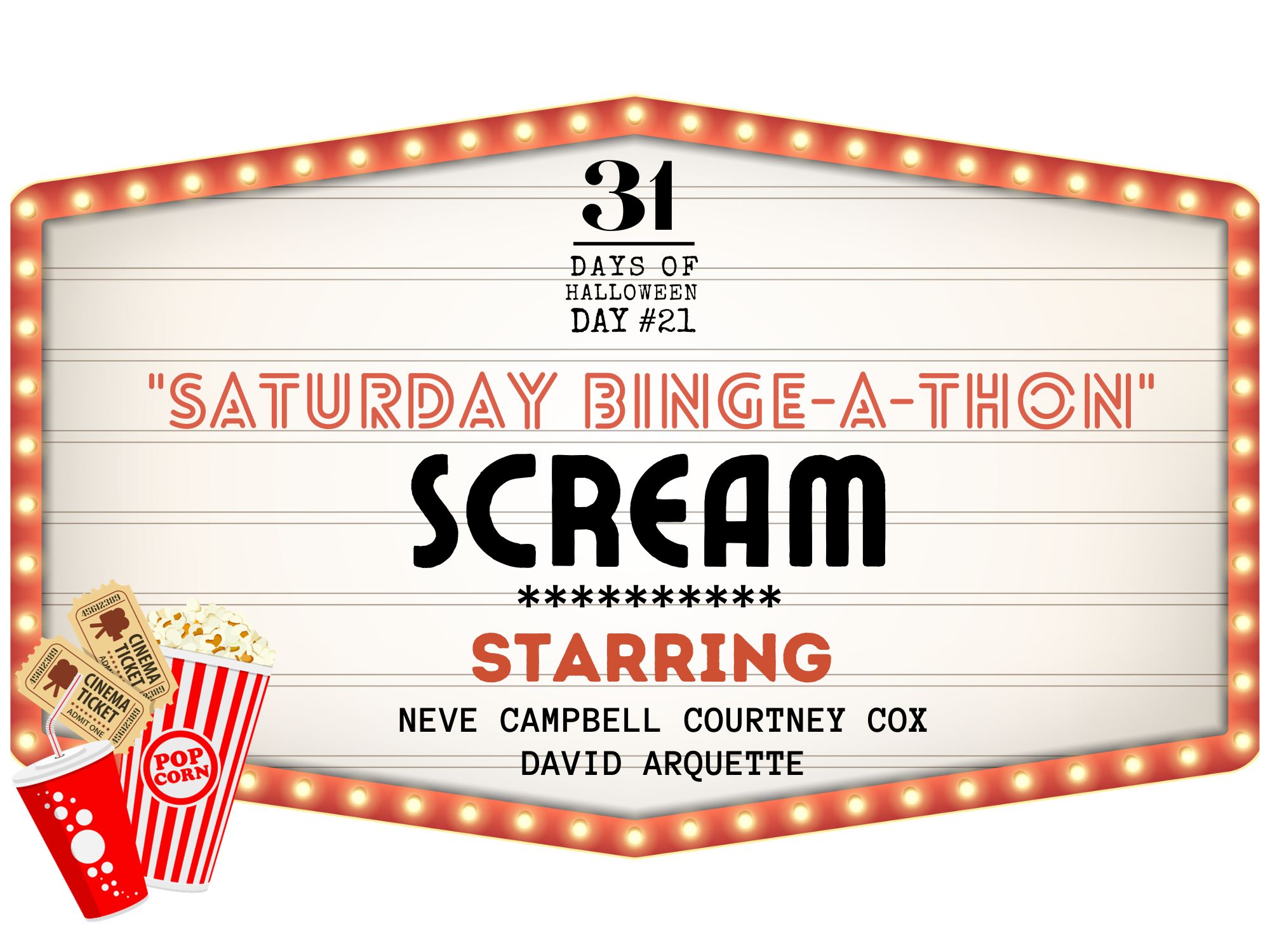 Today is your Saturday Binge-A-thon of the Scream franchise. For an archive of the movie Madness, click here. For other Halloween goodies, check out the freebies page. Don’t forget to scroll to the bottom for a “Scream Quiz”