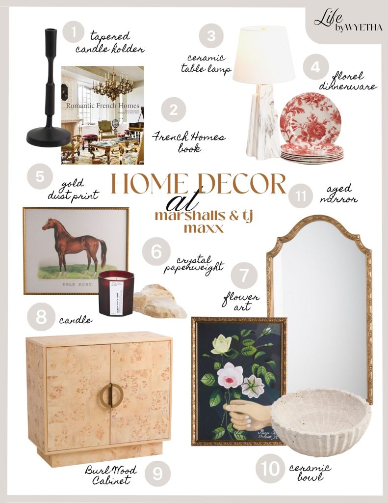 Over the years, I’ve found some great deals, and I’ve always been able to get decor for any room that’s great quality and priced right. For this list, you won’t see anything from Home Goods because even though it is a sister store, you have to physically go in to shop, whereas, for TJ Maxx and Marshalls, you can order online.