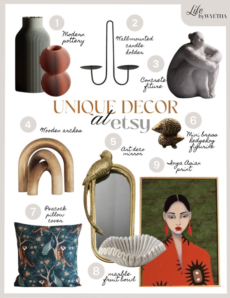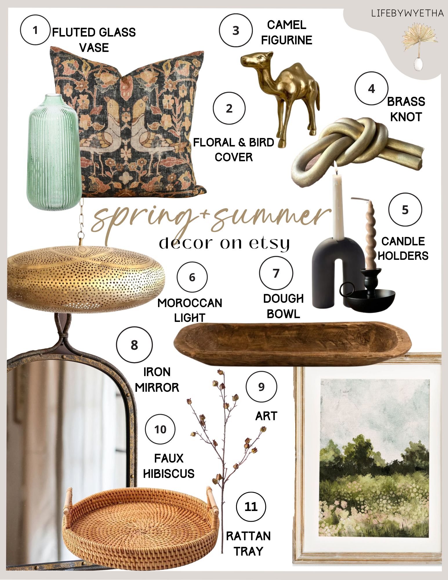For the past few years, I’ve done a board about Spring or Summer home decor from Esty, and over time, it tends to be repetitive (I’ll agree), so this time around, I want to highlight some unique items that have been on my favorites list.
