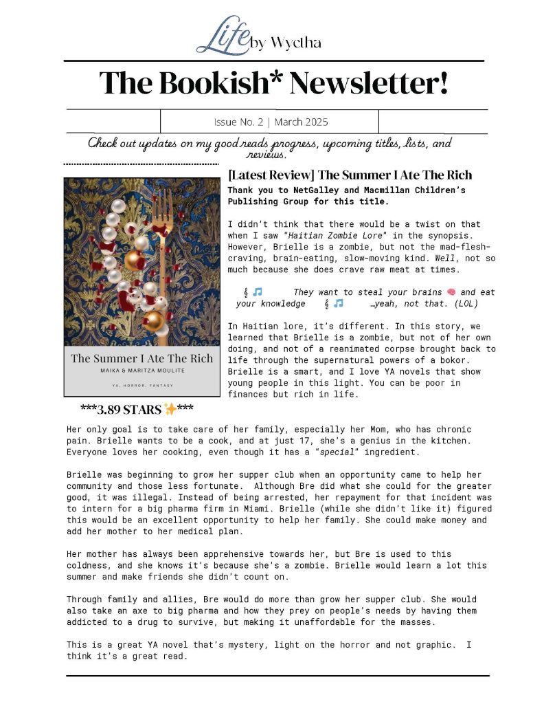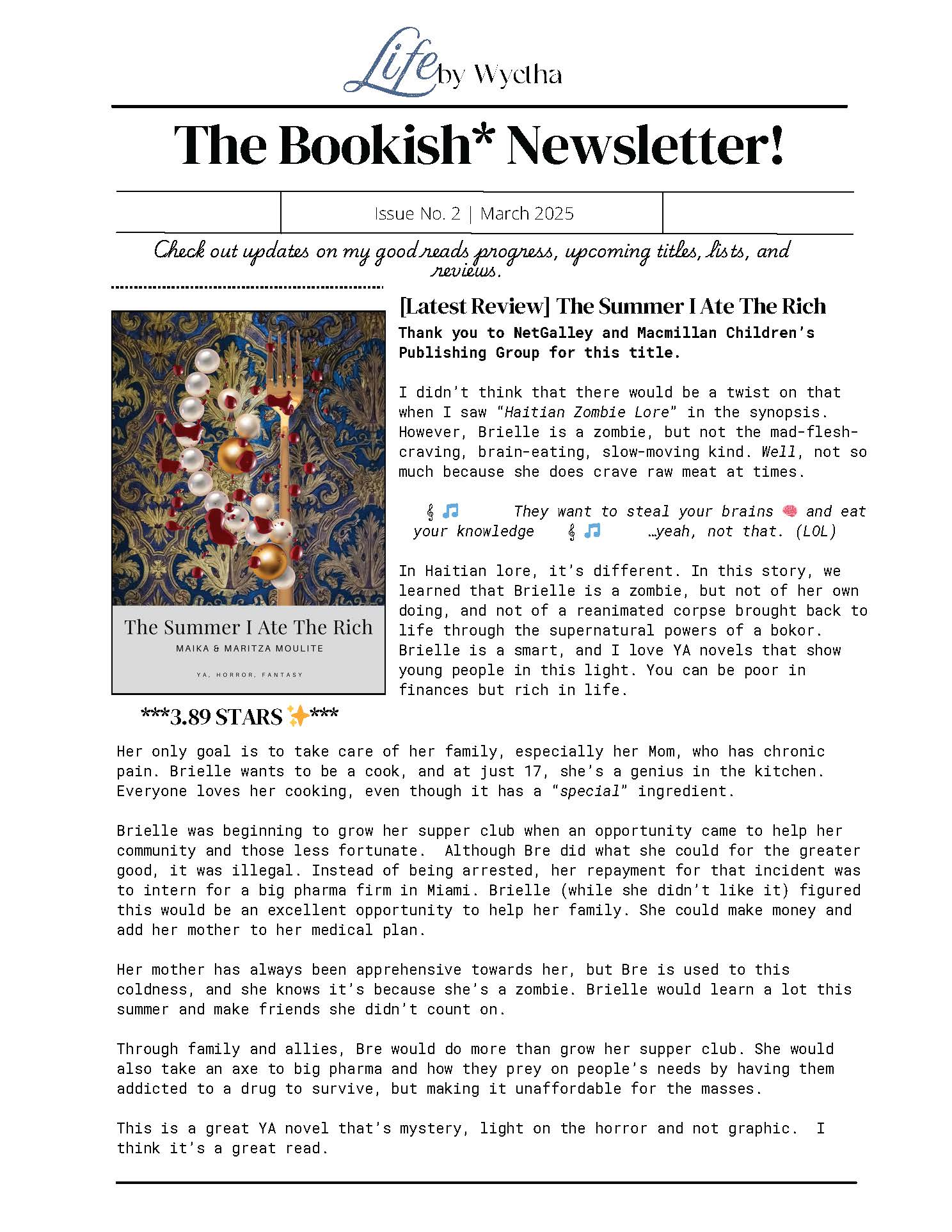 I’m sharing my Bookish* Newsletter for March, and I’ve made some changes and updates that reflect my world of books. I wouldn’t say that my face is always in a book, because I enjoy articles and magazines as well but I promised myself I would read more, and I’m hoping this media serves as a great place to keep track of everything. So enough of my vernacular, and so it goes.