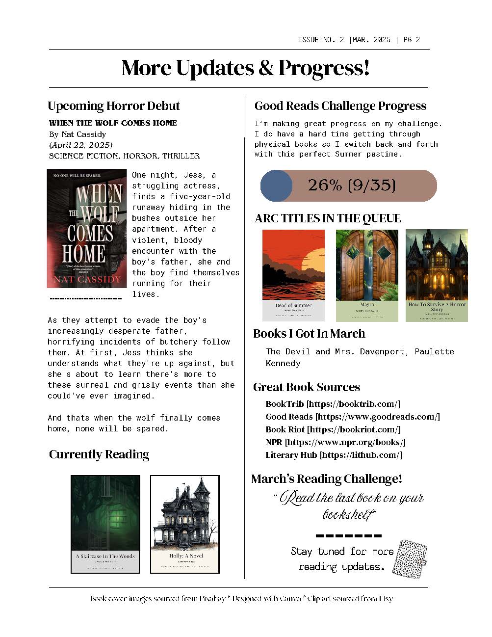 Today, I want to try something new: a newsletter. No one [really] goes to my “Book Tracker” page, and I know that’s really for me, but I figured I could capture some of that in a newsletter and highlight a few things I’m reading and some updates. With all that said, here it goes.
