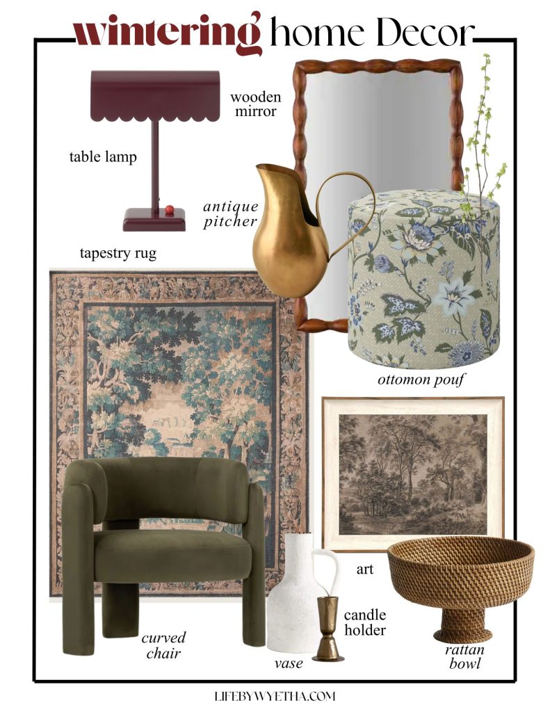 I’ve curated a small list of what’s popping up in home stores this season, and at the top of the search are pottery, rattan, warm wood pieces, tapestry-style textiles, and vintage art. There’s also a noticeable shift toward spaces that feel collected rather than curated—rooms layered over time, filled with texture, and softened by curved lines.