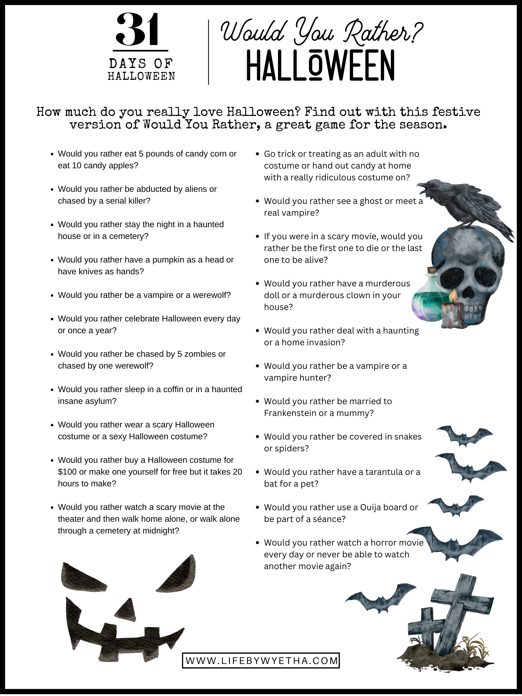 Halloween Games Bundle! Your download bundle includes 8 fun Halloween games! Halloween Games Bundle! Name: Email: All pintables are for PERSONAL USE ONLY. INSTRUCTIONS: This is a ZIP file containing 8 PDF files. + Once you subscribe + refresh the page + click the box to download. In addition to the instant download, you will also receive an email with the ZIP file link. The ZIP file contains 8 games. Have fun! Loading... Share this post!: Click to share on Facebook (Opens in new window) Facebook Click to share on Pinterest (Opens in new window) Pinterest Click to email a link to a friend (Opens in new window) Email Like this:Like Loading...