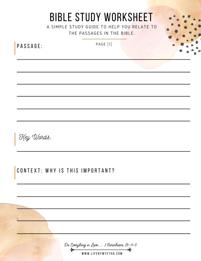 Bible Study WorksheetA simple 2-page guide to help you relate to the passages of the Bible. |
