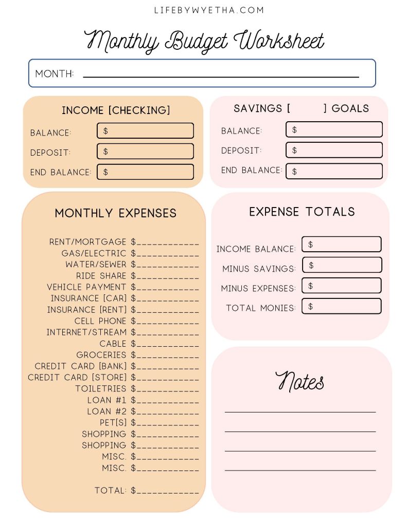I’ve created a few lifestyle printables that can be used to help manage your budget and time. Click on the image for the printable.