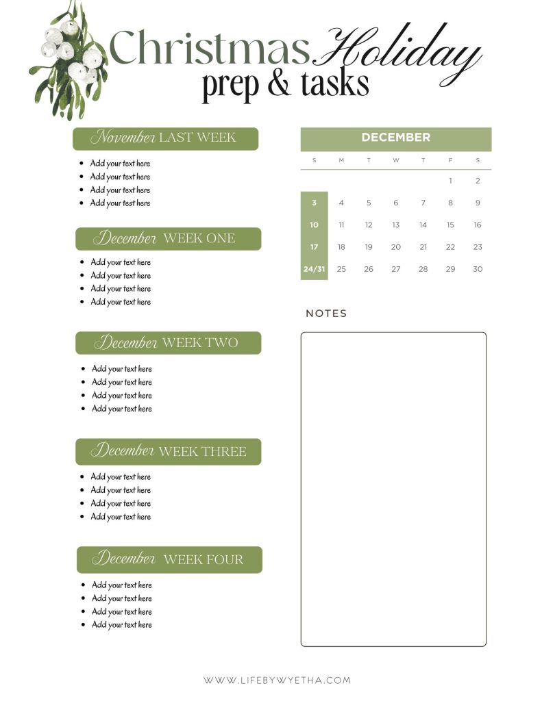 CHRISTMAS HOLIDAY PRINTABLES & LISTS